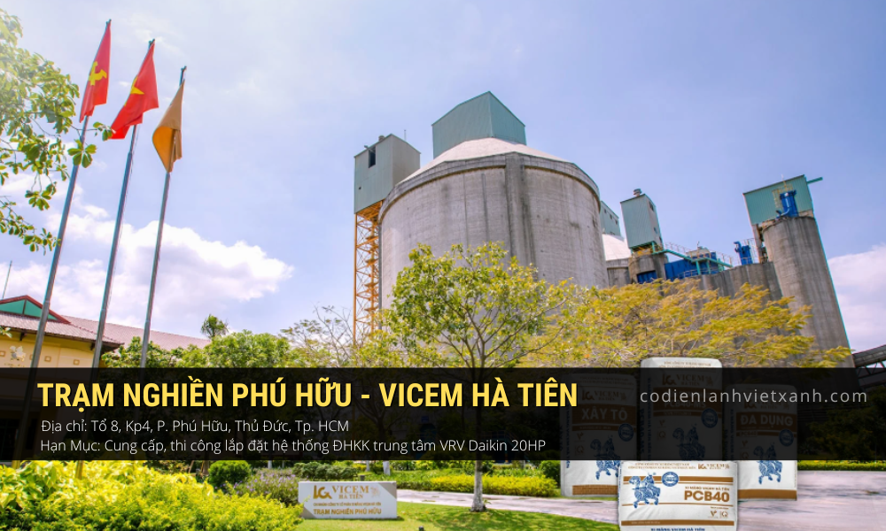 Với vai trò là nhà thầu cơ điện lạnh uy tín tại TP.HCM, Công ty TNHH Cơ Điện Lạnh Việt Xanh tiếp tục khẳng định năng lực qua dự án cung cấp và thi công lắp đặt hệ thống máy lạnh tủ đứng công suất lớn (20 HP) tại Trạm Nghiền Phú Hữu - thuộc Công ty Cổ phần Xi Vicem Hà Tiên.